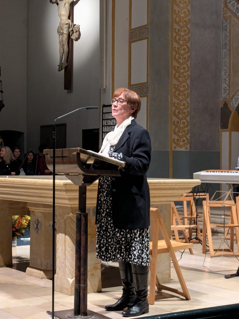 Paul, Helene und Christina aus der Klasse 7b haben diese Begrüßung mit Bravour und mit Charme gemeistert: Vielen Dank für euren Einsatz: Gratias agimus vobis!