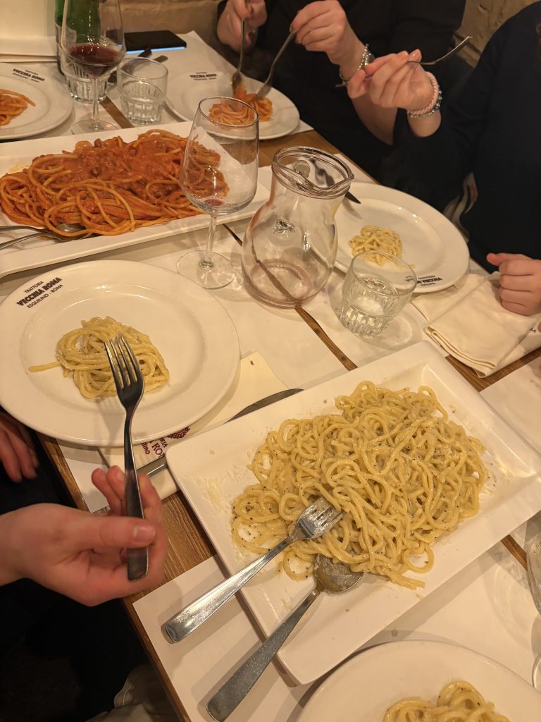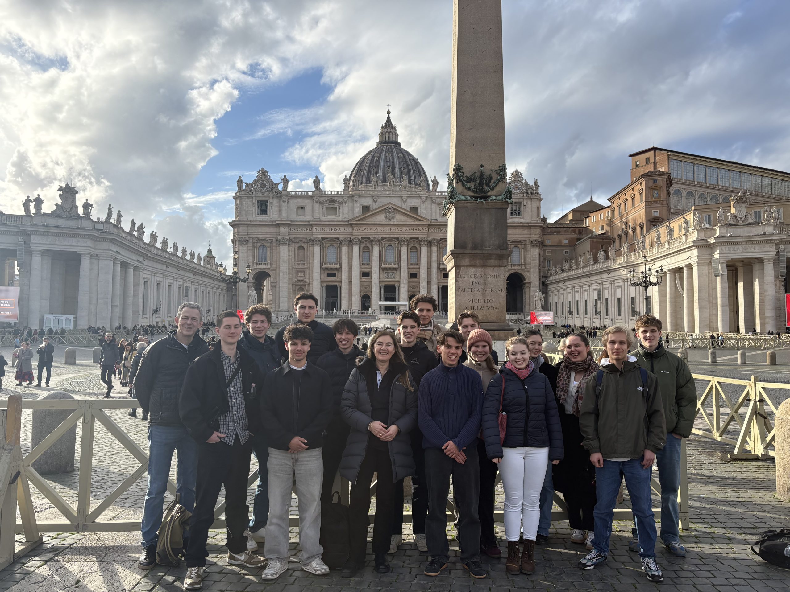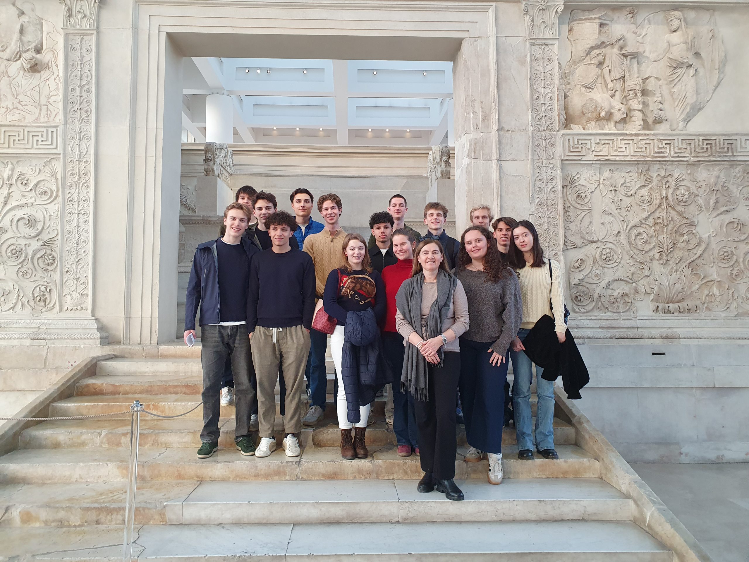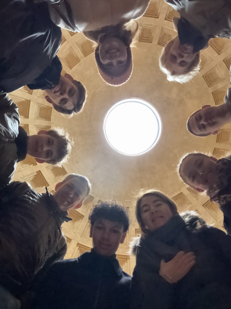Salvete! Die Abiturientinnen und Abiturienten des Lateinkurses (Leistungsfach)/Q13 mit Kursleiterin StDin Michaela Weigl, begleitet von StD Andreas Promberger, erlebten auf ihrer Studienfahrt vom 22.-25. Januar 2026 das antike und das gegenwärtige Rom von seiner bzw. ihrer schönsten Seite: Die beeindruckenden antiken Stätten – eben erst im Unterricht besprochen – nun „live“, wie z.B. Ara Pacis, Colosseum, Forum Romanum, die Hügel Palatin und Kapitol, zudem das Pantheon –, darüber die heute pulsierende Stadt an Plätzen wie z.B. Piazza del Populo und Piazza Navona, sowie der Vatikan mit seinen unvergleichlichen Museen und dem grandiosen Petersdom: All diese – letztlich unbeschreiblichen – Eindrücke wurden von den Schülern zusammengefasst in dem begeisterten Fazit: „Was für eine wunderbare Stadt!“ Der Januar hat sich dabei dank erfreulichen Wetters und einer für Rom maßvollen Besucherzahl als glücklicher Monat für einen Besuch erwiesen. Die Schülerinnen und Schülern zeigten dem Charakter der Studienfahrt folgend mit treffend vorbereiteten Referaten ihr Wissen an den wesentlichen Stationen der Reise. Das Abitur kann kommen – und mit einem zweiten oder weiteren Besuchen in Rom dann gefeiert werden. Die ersten Fußspuren für weitere Erkundungen sind gelegt. Valete!
