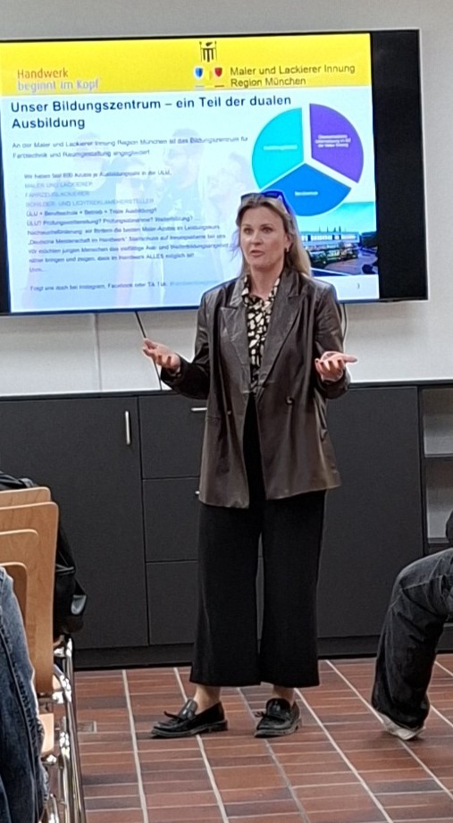 Am 23. April war unsere 9. Jahrgangsstufe beim Tag der offenen Tür der Maler und Lackierer Innung München (Bericht mit weiteren Bildern) zu Gast. Die Schüler konnten am 23. April in fünf Stationen in Kleingruppen die Möglichkeiten in den Gewerken Maler und Lackierer, Fahrzeuglackierer sowie Schilder- und Lichtreklamehersteller und zu den vielseitigen Weiterbildungsmöglichkeiten im Handwerk kennenlernen. Zudem war der spektakuläre Showtruck von Brillux vor Ort. Dort konnten sich die Jugendlichen an verschiedenen Stationen über das Berufsbild zum Maler und Lackierer informieren. Außerdem hatten die Schüler die Möglichkeit, mit Spielen und 3D-Anwendungen zu experimentieren und Räume virtuell zu gestalten. Zudem konnten sich die Schüler Videos rund um die Ausbildungen im Malerhandwerk anschauen. Außerdem war dabei: der digitale Lackierroboter – SimSpray! Dort konnte Die Schüler in Echtzeit eine Oberfläche lackieren und erste Erfahrungen im Umgang mit einer Lackierpistole sammeln. Herzlichen Dank an Herrn Schmidbauer und Frau Breunig und das Team der Maler und Lackierer Innung für Engagement, die Geduld sowie die Gastfreundschaft, um drei der übe 130 Handwerksberufe u. a. unseren Schülern vorzustellen. Gleichzeitig fand dieser Projekttag am bundesweiten Beitrag des Girl’s Days und Boy’s Day statt und kann als Beitrag zur „Geschlechtergerechten Berufsorientierung“ angesehen werden. Junge Frauen und Männer sollten sich bei der Wahl ihres Berufs nicht von Urteilen wie „typisch Frau“ oder „typisch Mann“ leiten lassen, sondern sich nach ihren persönlichen Interessen und Begabungen entscheiden.